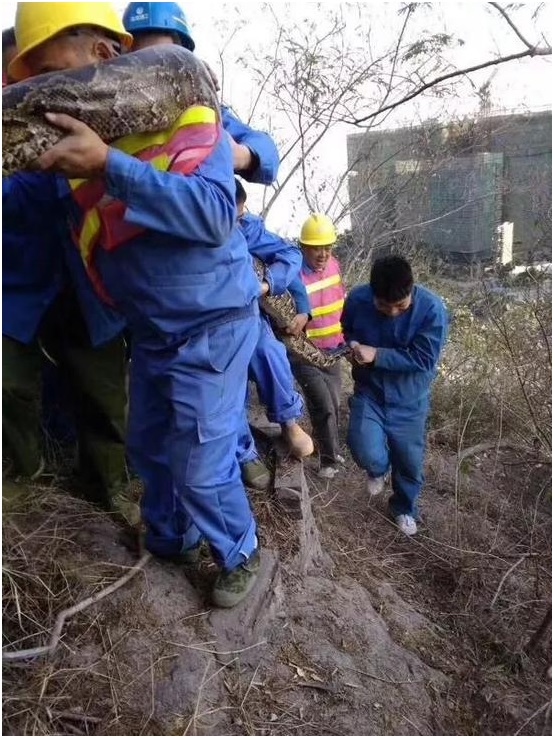 2017年12 月 20 日蟒蛇以出现,深圳市野生动物救护中心工作人员到现场,蟒蛇重 100 余斤,长 4 米多,该大蟒蛇